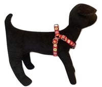 This is an easy on/off harness with one buckle closure behind the neck. The lightweight nickel plated buckle and hardware are very reliable and washable in the machine.